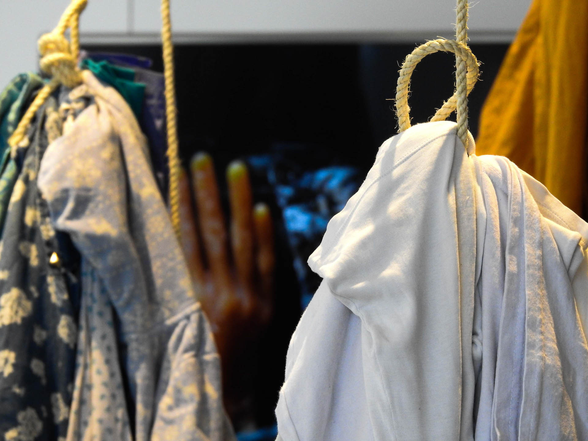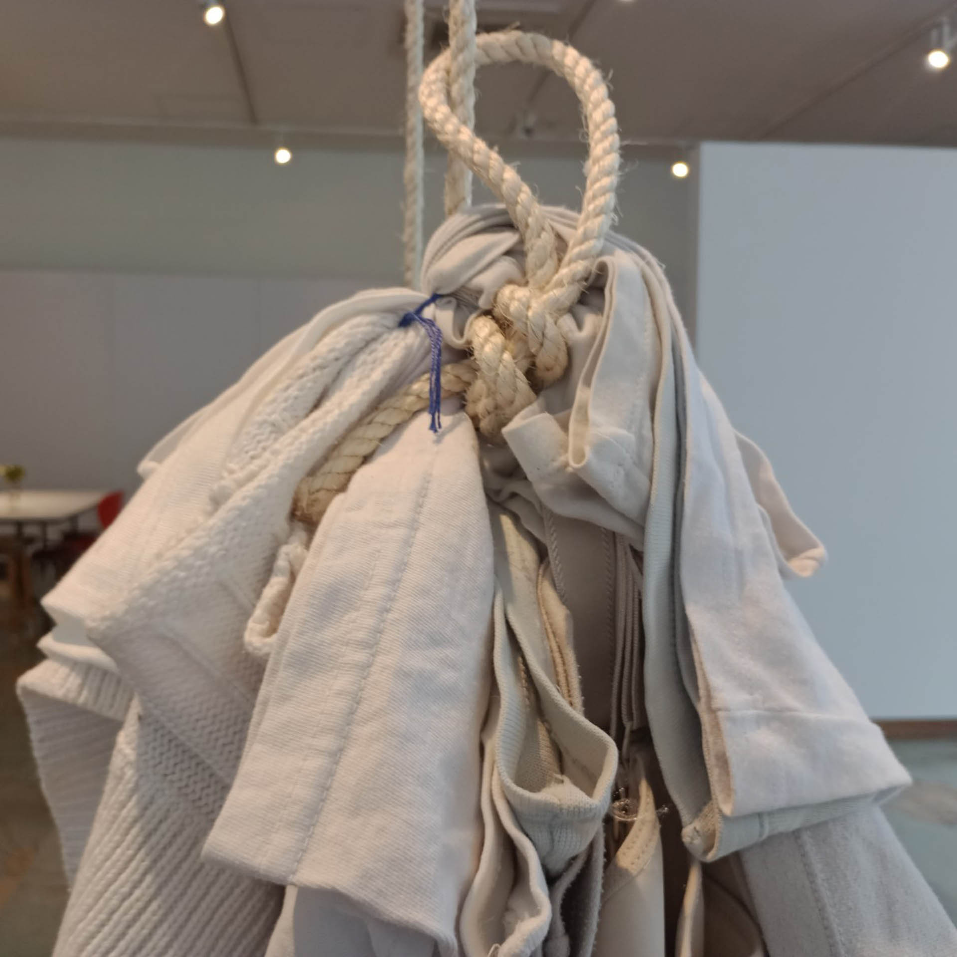 La obra, aborda el desgaste y el exceso del trabajo como resultado de una aceleración desmedida, una maquinización y sistematización del cuerpo en pro de la industria, a la vez su invisibilización como fuerza productiva, al ser poco valorada o minimizada. Se aborda también la desaparición del cuerpo patológico asociado al agotamiento físico. Asimismo, las tareas asociadas a la limpieza de la ropa, aluden a una exigencia por la asepsia y el cuidado hacia el otro que históricamente ha sido otorgada al ámbito femenino.  La producción textil industrial marca el ingreso de las mujeres en el ámbito laboral, contiene no solo la historia de su manufactura, el vestuario posee la impronta del cuerpo y está en su lugar, como su extensión.
